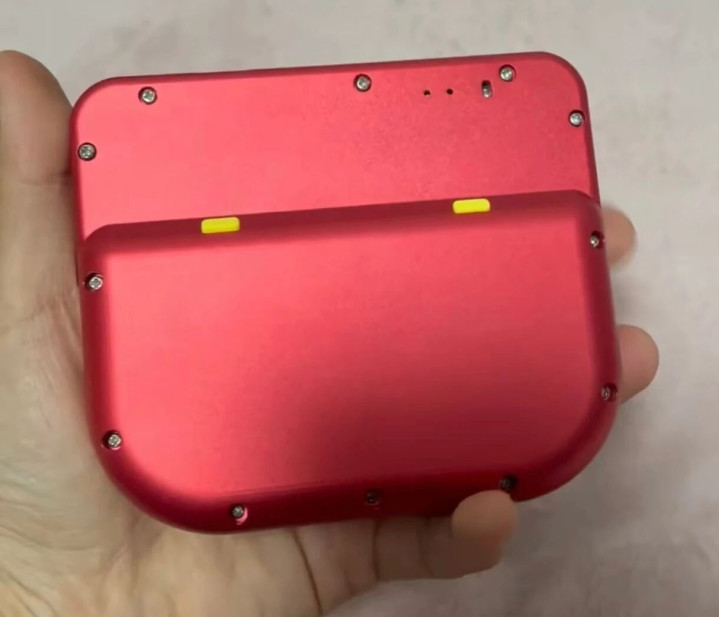 不过外壳是用螺丝固定的,背面12颗螺丝未免也太多了,这是装好后就不打算取出来啊。装上iPhone4S后,俨然就变成了小号的老任2DS游戏机,背面那两个黄色凸起貌似是L/R键。